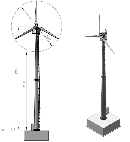 風(fēng)輪直徑:9.8m 葉片數(shù)量及材質(zhì):3*增強(qiáng)型玻璃鋼