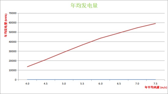 年平均風(fēng)速5.5m/s:36500kWh 年平均風(fēng)速6m/s:43600kWh